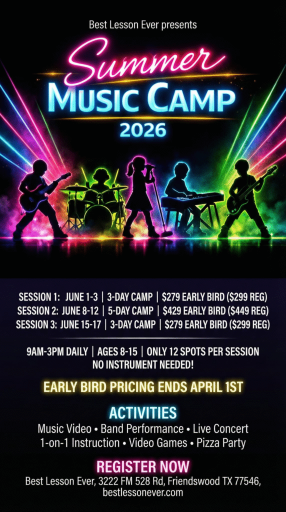Learn To Play In A Band, Record Your Own Music Video, And Star In Your Own Concert. Summer Camps in Friendswood, League City, and Webster, TX